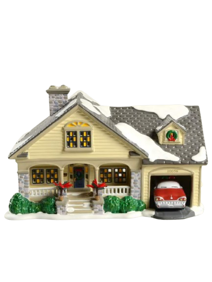 This charming red wrought iron park bench figurine adds a delightful touch to any village display.